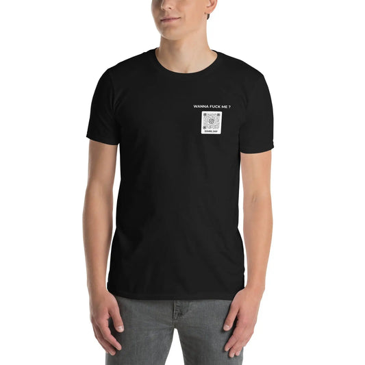 Customizable unisex t-shirt QR code Instagram chest - Wanna fuck me - dark