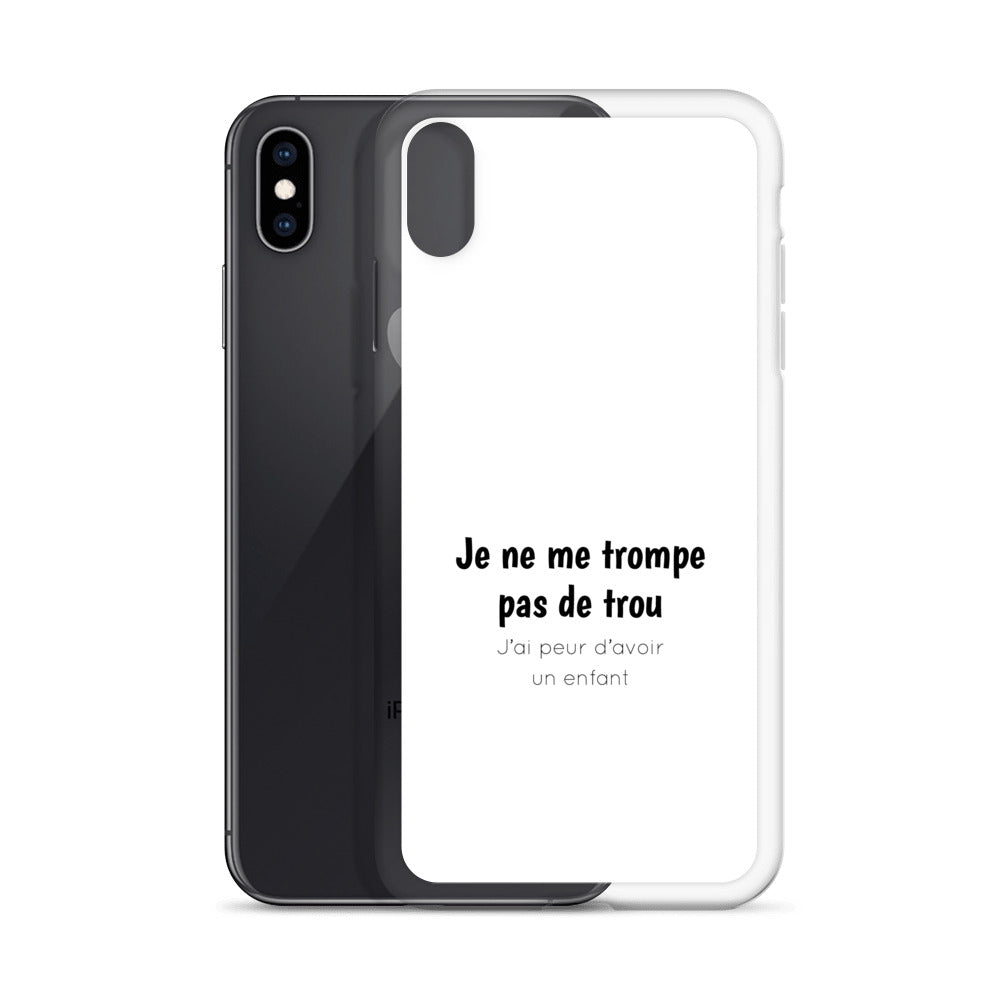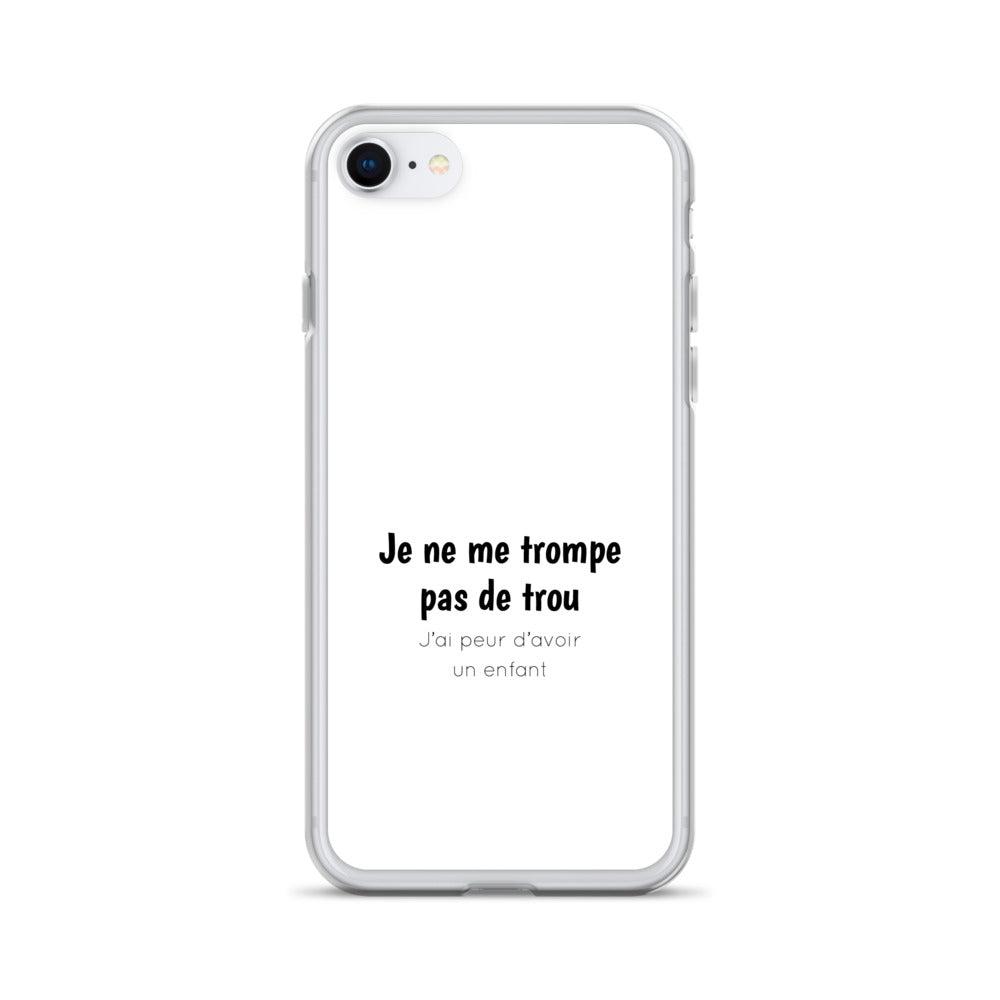 Coque iPhone Je ne me trompe pas de trou j'ai peur d'avoir un enfant