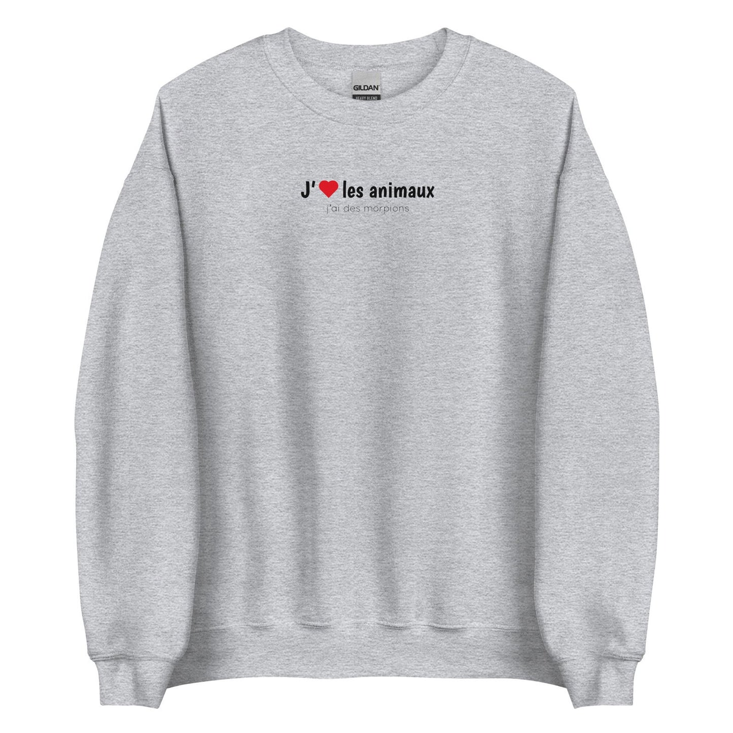Sweat unisexe col rond J'aime les animaux j'ai des morpions