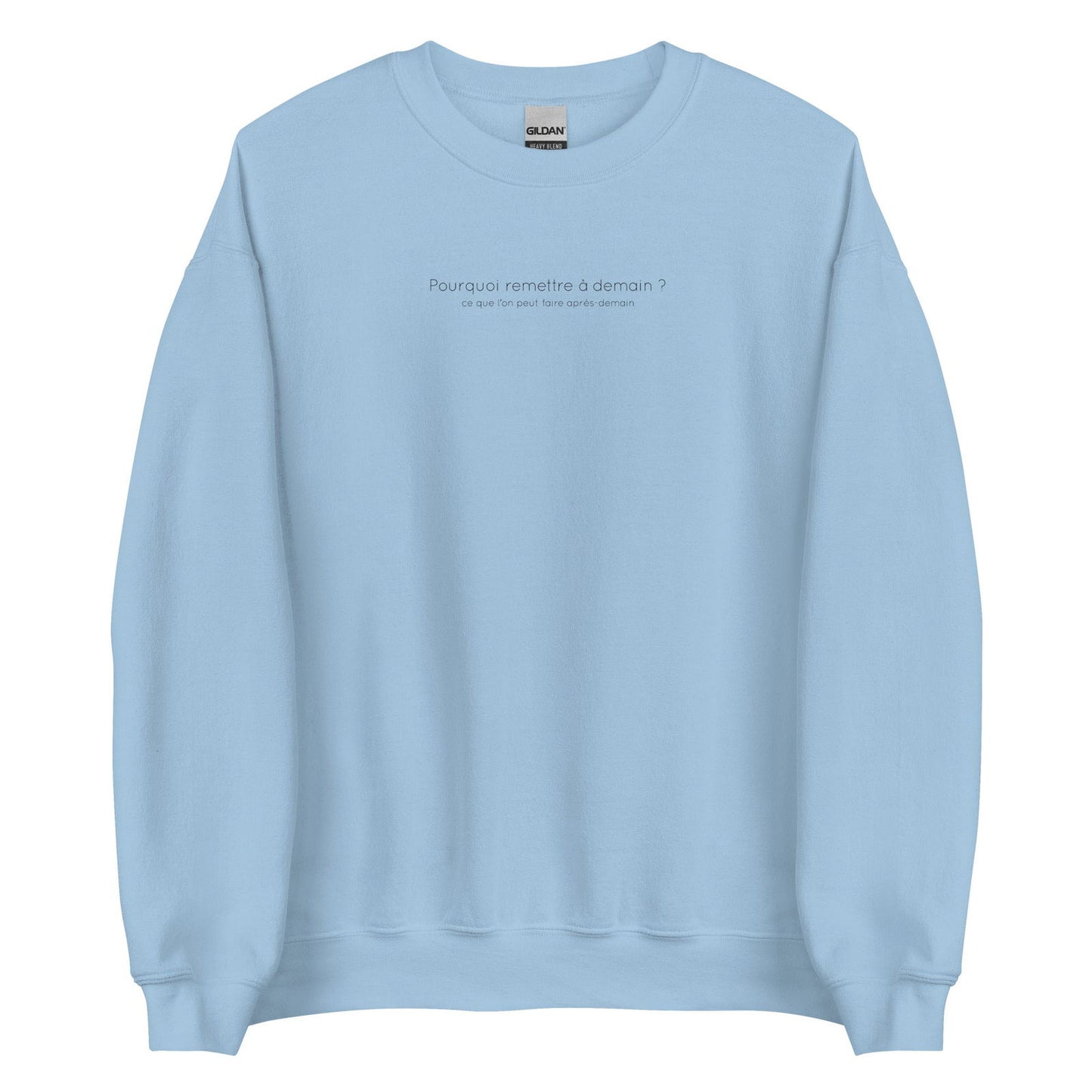 Sweat unisexe col rond Pourquoi remettre à demain ce que l'on peut faire après-demain